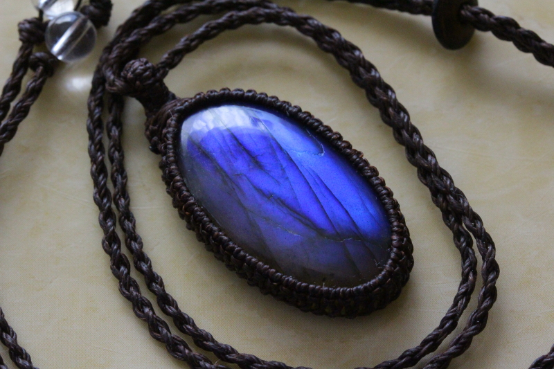 国内生産のマクラメペンダントで、ひもの長さは自由に調節できます。