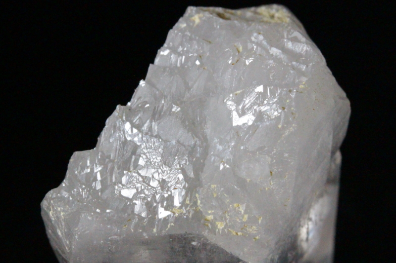 水晶本体は曇りガラス状の黄色っぽく、幾度も起きた地殻変動を受けて成長してきたので形が整っているものが非常に少ないです。