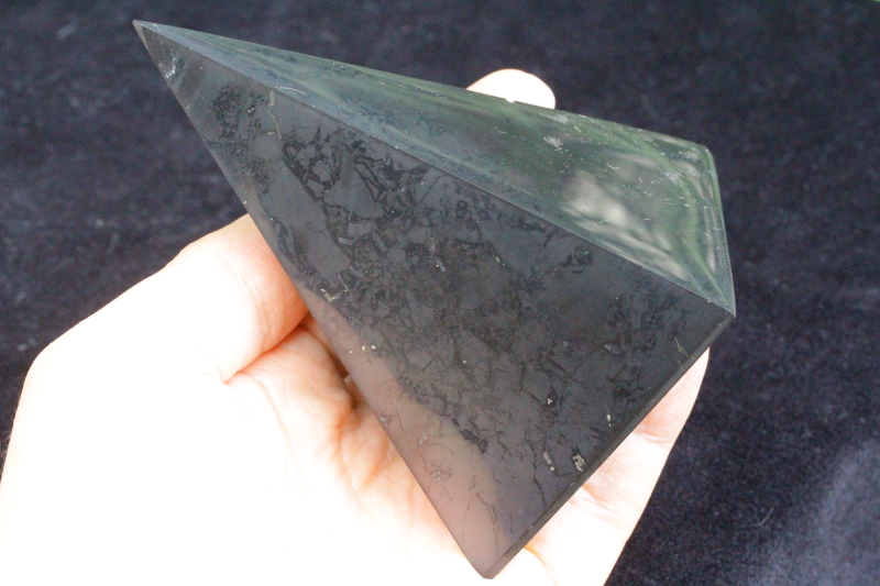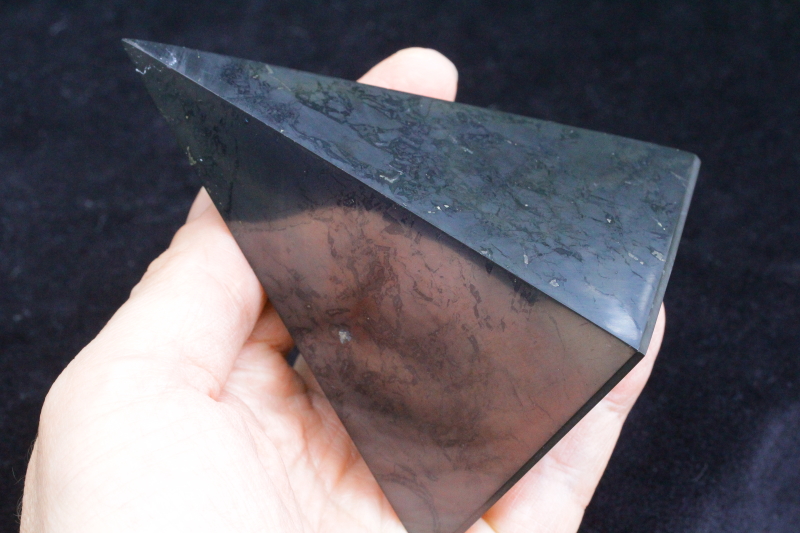 浄化・電磁波対策用!シュンガイト・ハイピラミッド100mm【高品質・光沢・激レア】