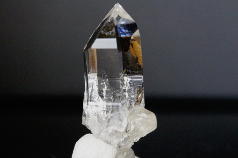 水晶下部に細い棒状のブラックトルマリンが内包されています。