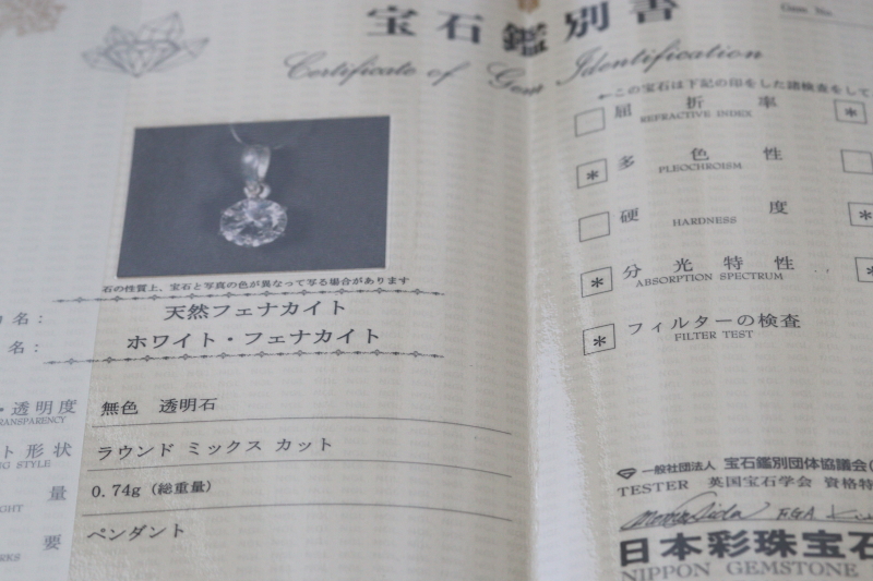 極上宝石1.0ct!超高波動ロシア産フェナカイト・シルバーペンダント鑑別書付き