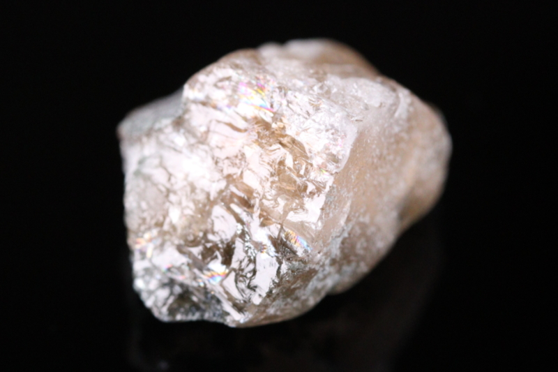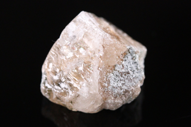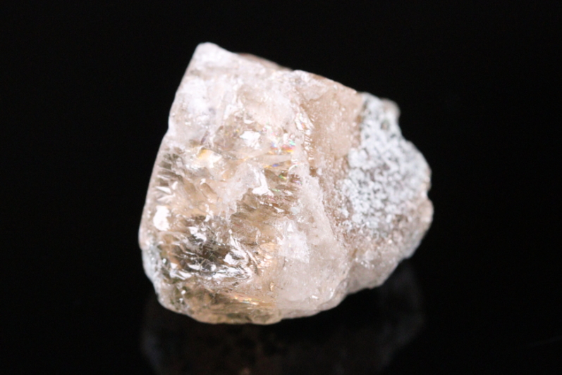 産出量が少ない鉱物で、無色、黄色、ピンク、淡色などに発色し、ガラス光沢を持ちます。