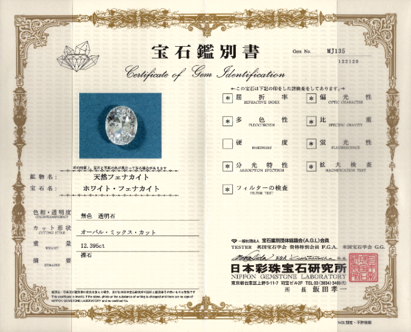 安心の日本彩珠宝石研究所の鑑別書付きです。