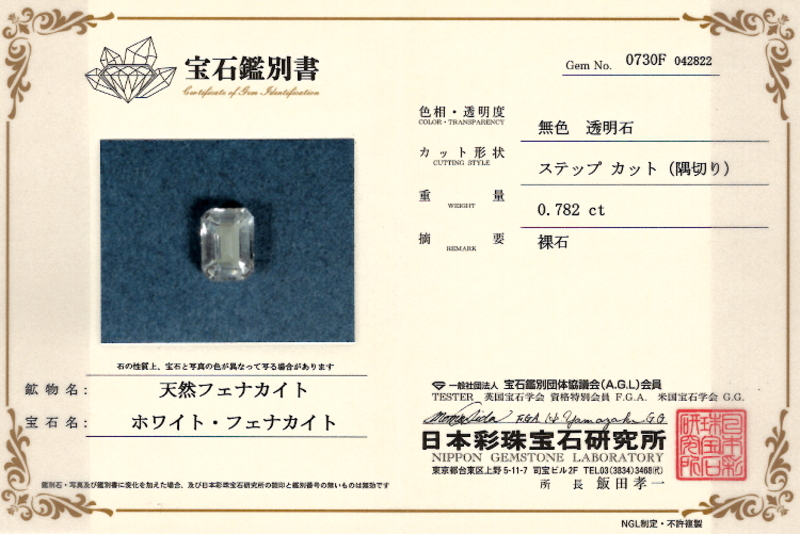 安心の日本彩珠宝石研究所の鑑別書付きです。