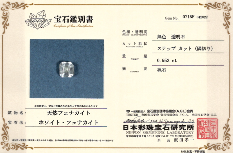 安心の日本彩珠宝石研究所の鑑別書付きです。
