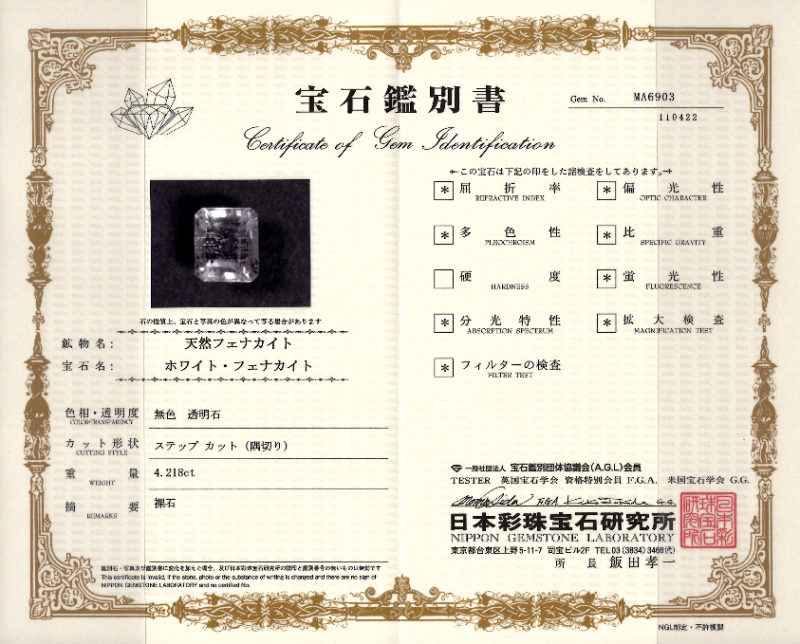 安心の日本彩珠宝石研究所の鑑別書付きです。