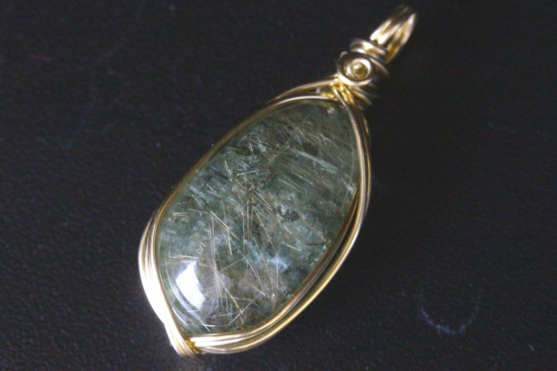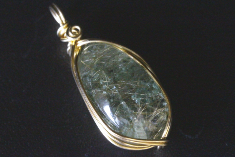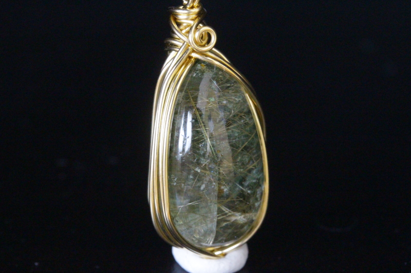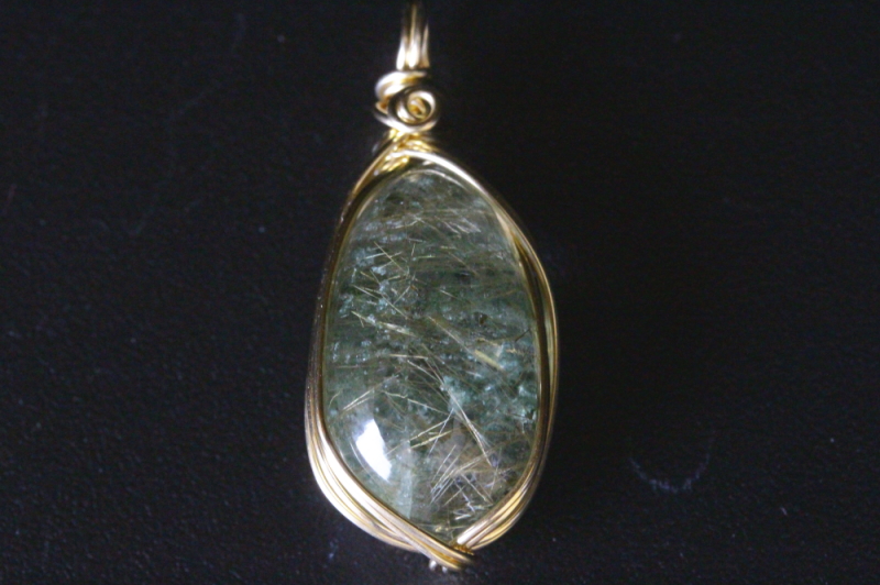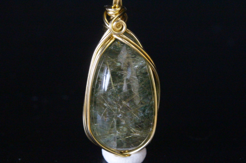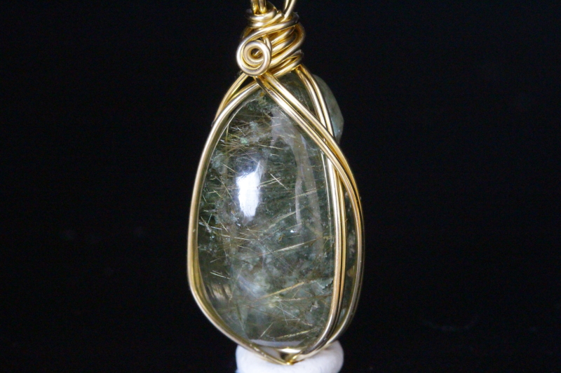 ●超激レア!超透明インドマニハール産ゴールドルチル&クローライト水晶ペンダント3【最高品質・超透明・光沢・超激レア】