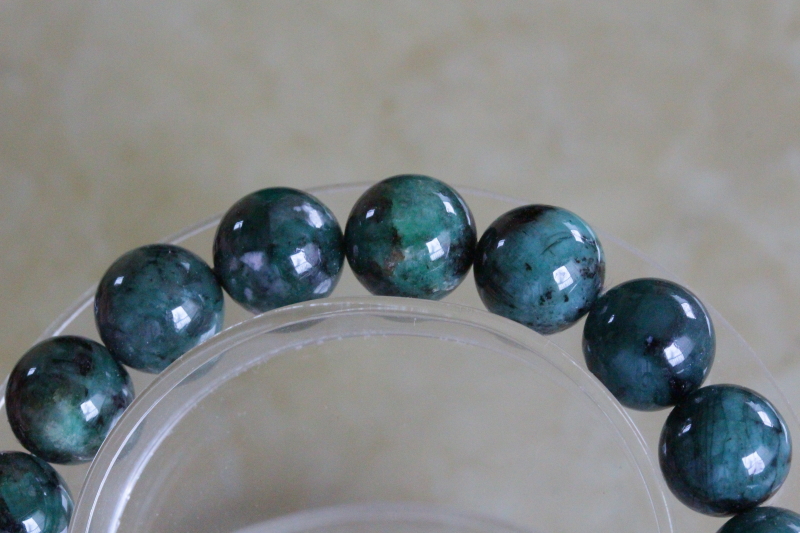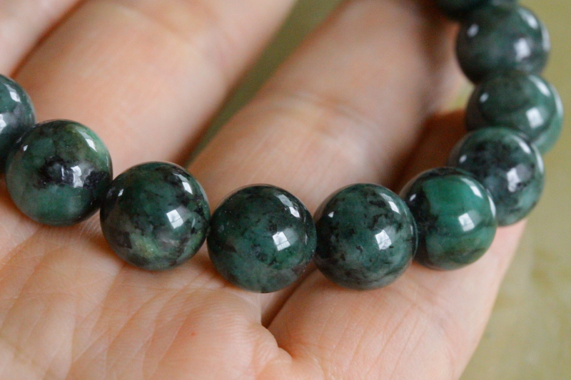 極上!コロンビア産エメラルドブレスレット11.5mm玉【高品質・光沢・激レア】