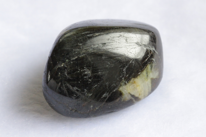 一見すると真っ黒にも見えますが、光の角度によってゴールド、ブルー、グリーンなどの独特の輝きが見られます。